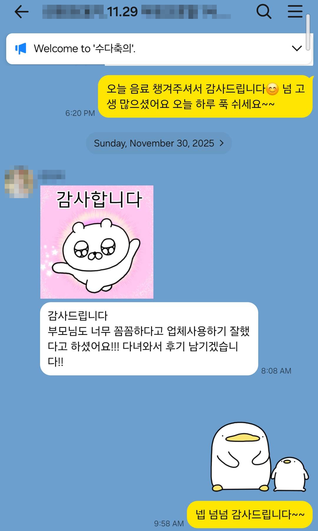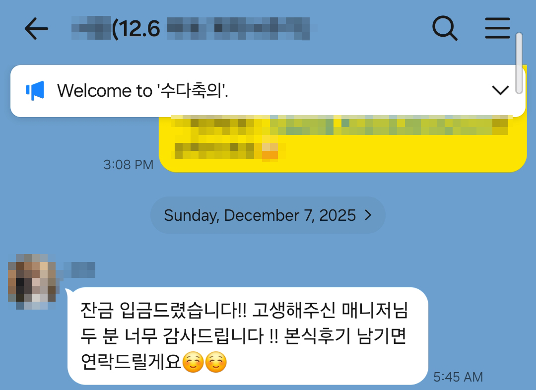 광고가 아닌, 예식이 끝난 후 직접 보내주신 감동의 메시지입니다.
