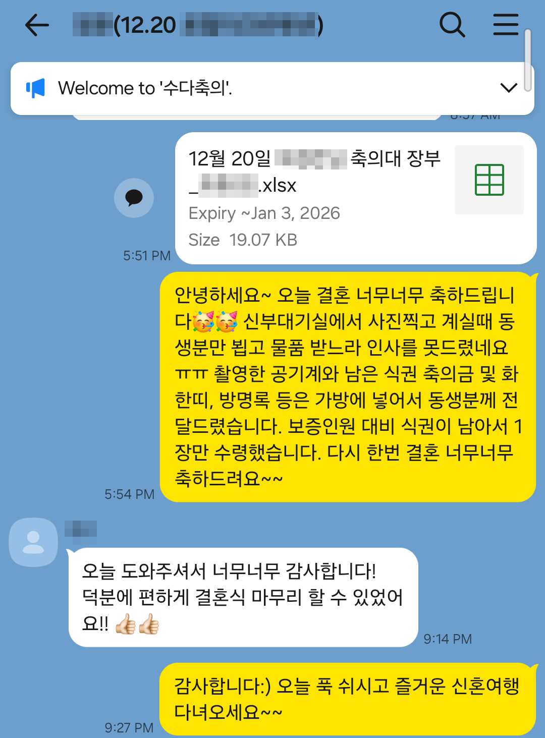 일생에 한 번뿐인 결혼식, 작은 실수도 용납되지 않기에 수다축의대행이 필요합니다.